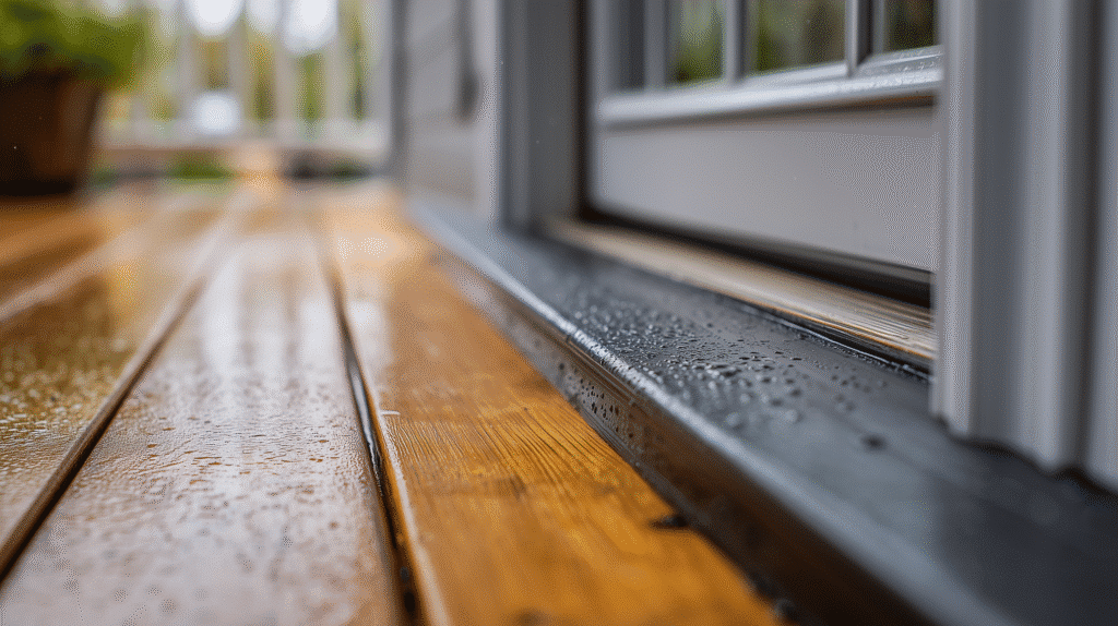Add corner seals | 5 min | Low | Blocks corner leaks at sill |